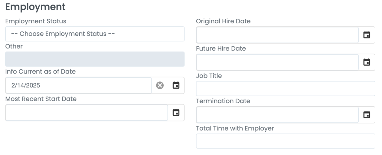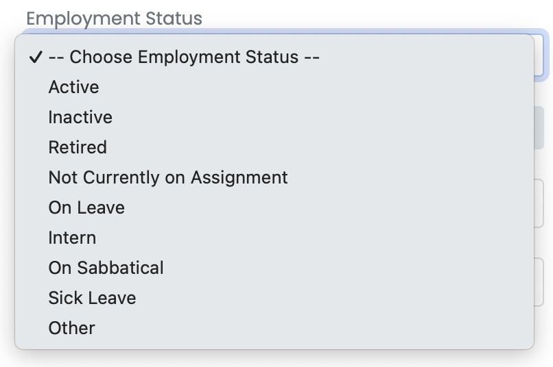 • Employment Status: Click and choose the correct status.
