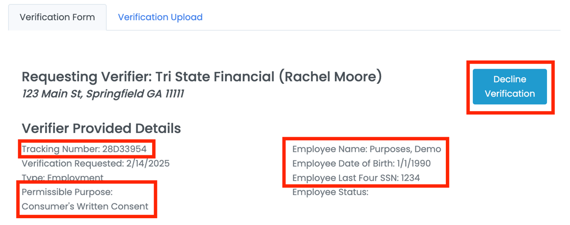 • Each verification has a unique tracking number and Permissible Purpose